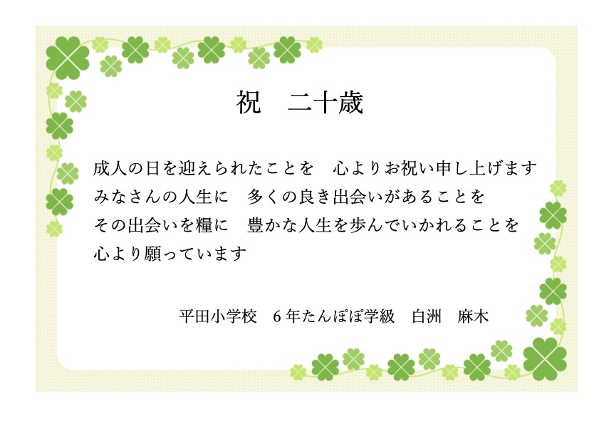 お祝いのメッセージ